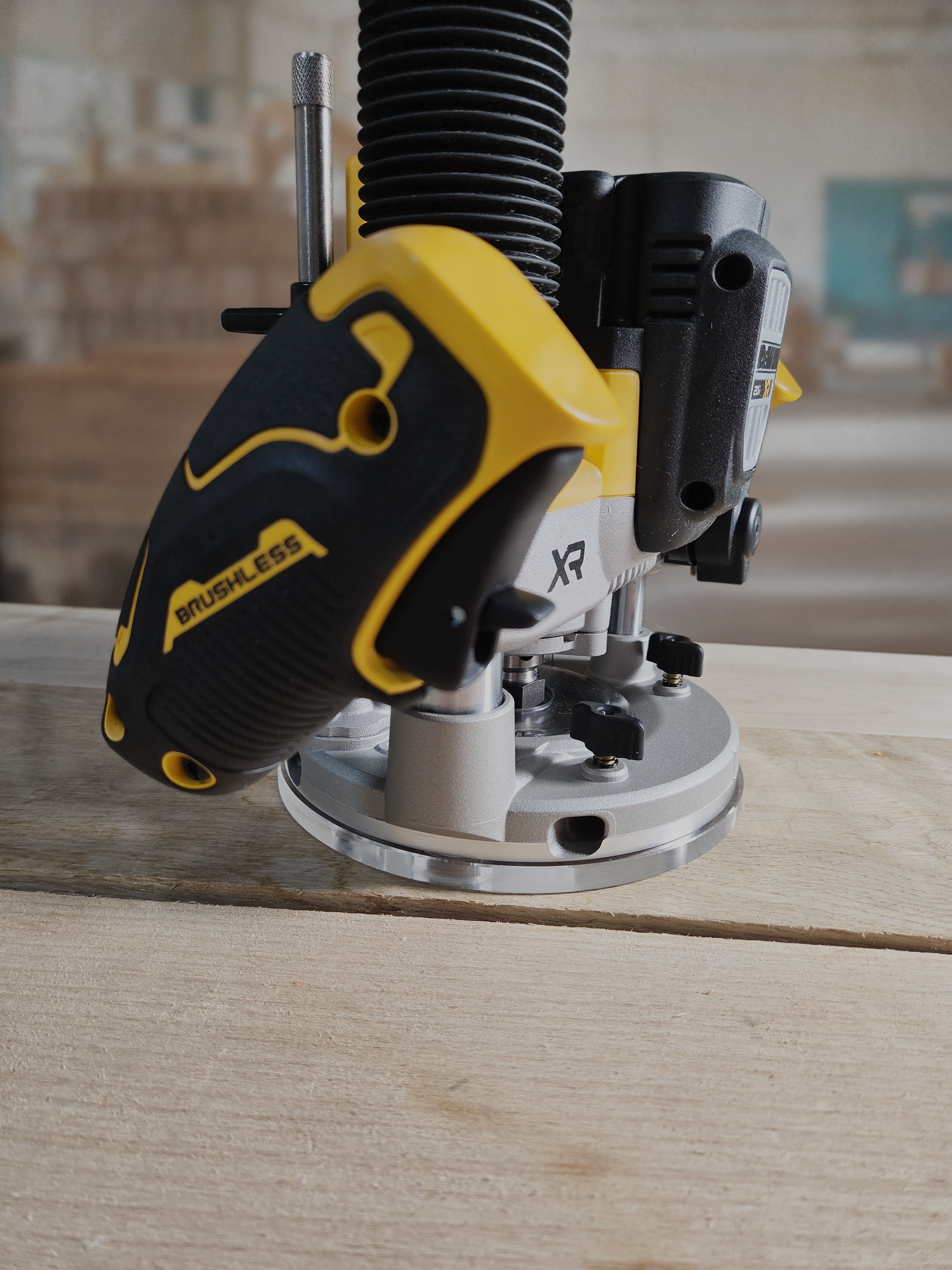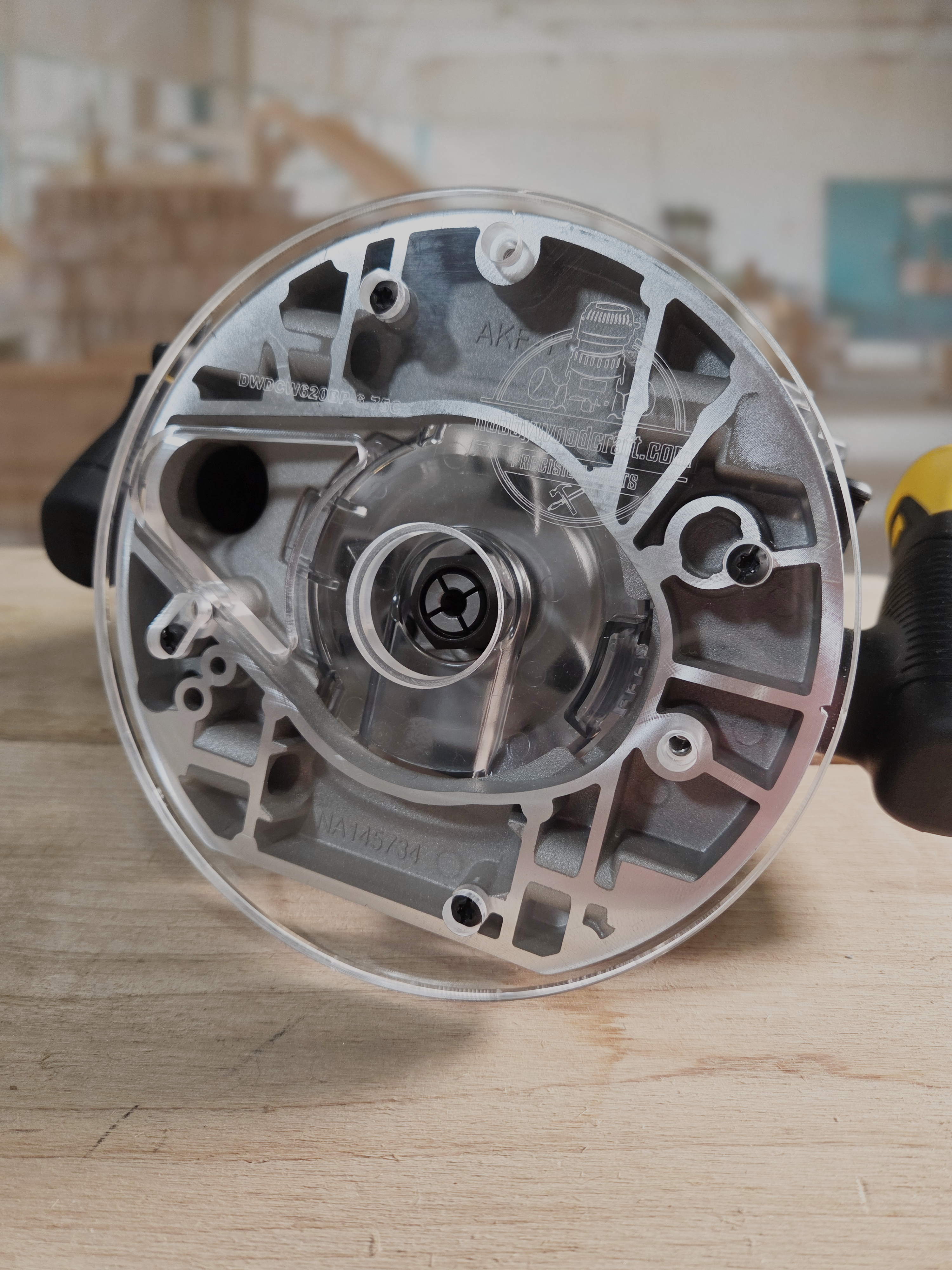 3/8″ Thick 6.75″ circle baseplate upgrade with bushing compatibility for Dewalt DCW620B plunge base