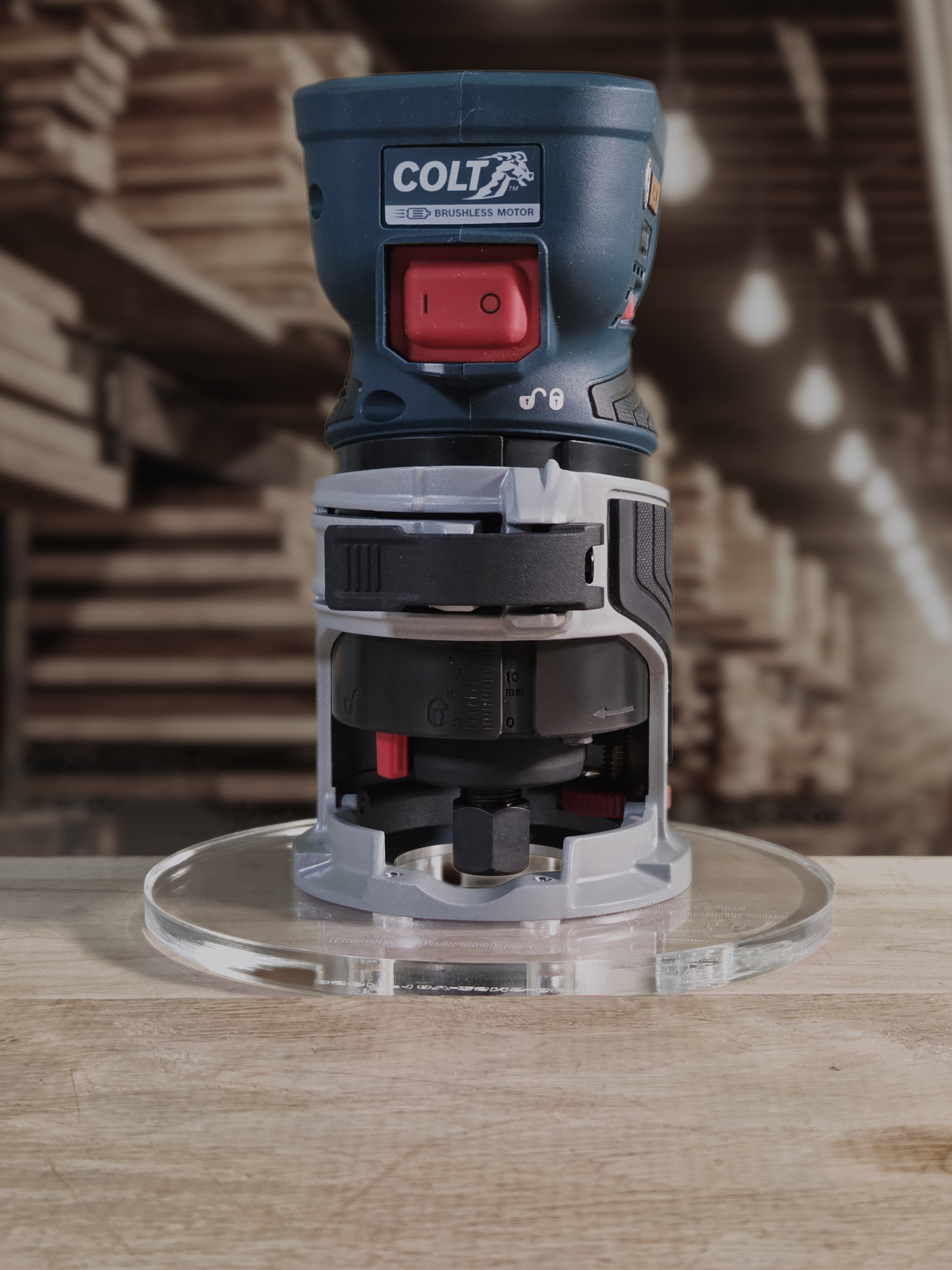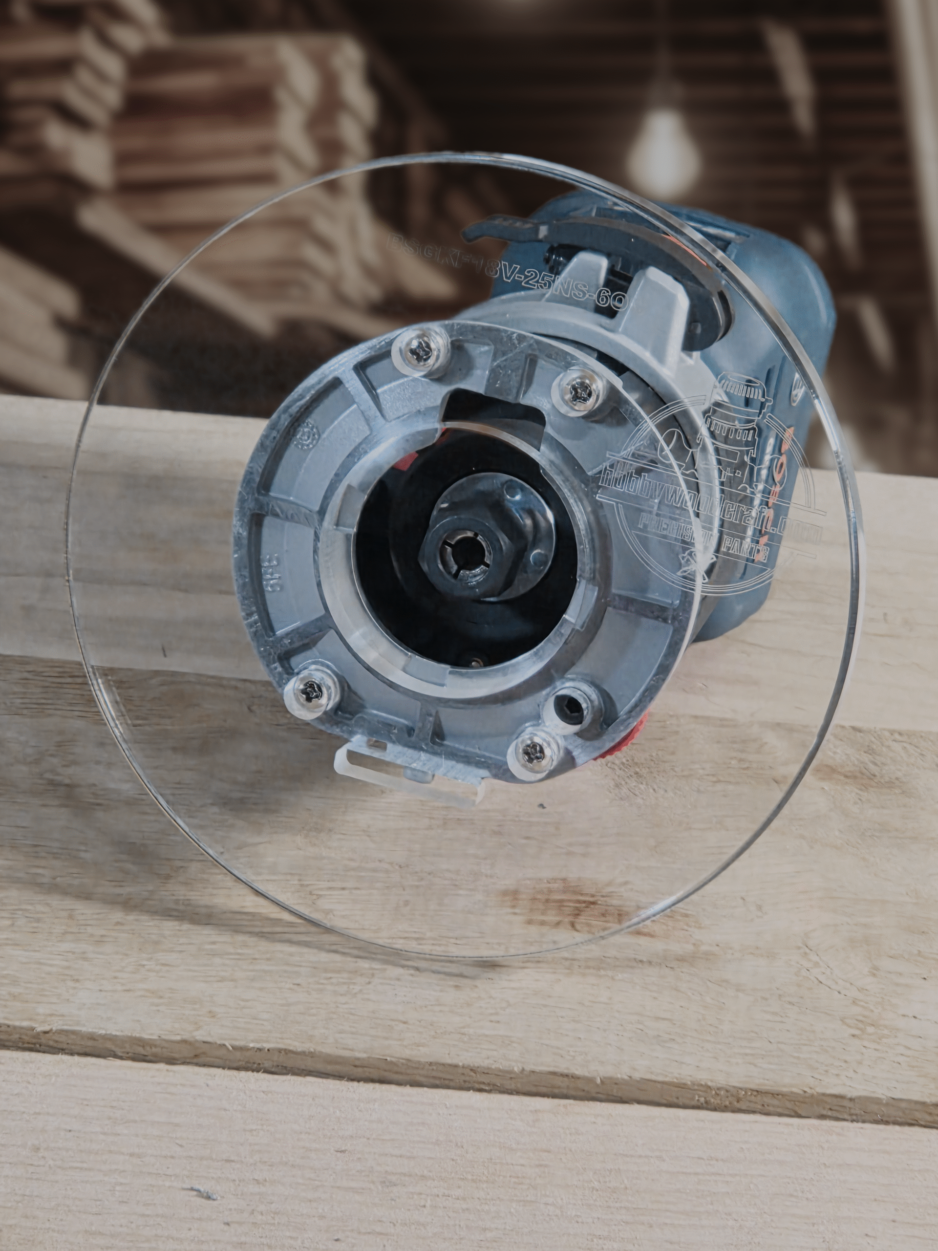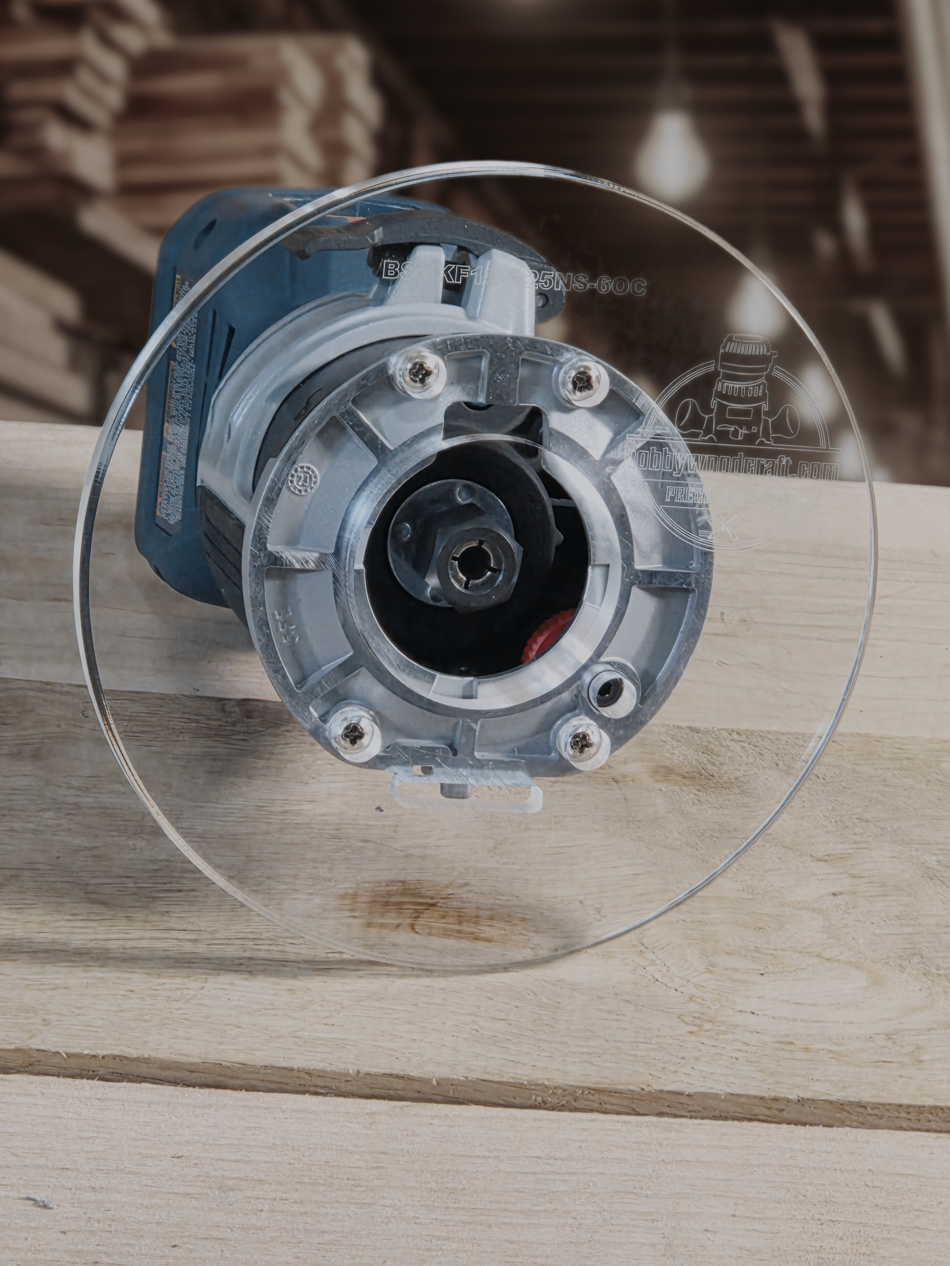 3/8″ Thick 6″ Circle baseplate upgrade with a 2″ opening for Bosch BSGKF18V-25N fixed base router.
